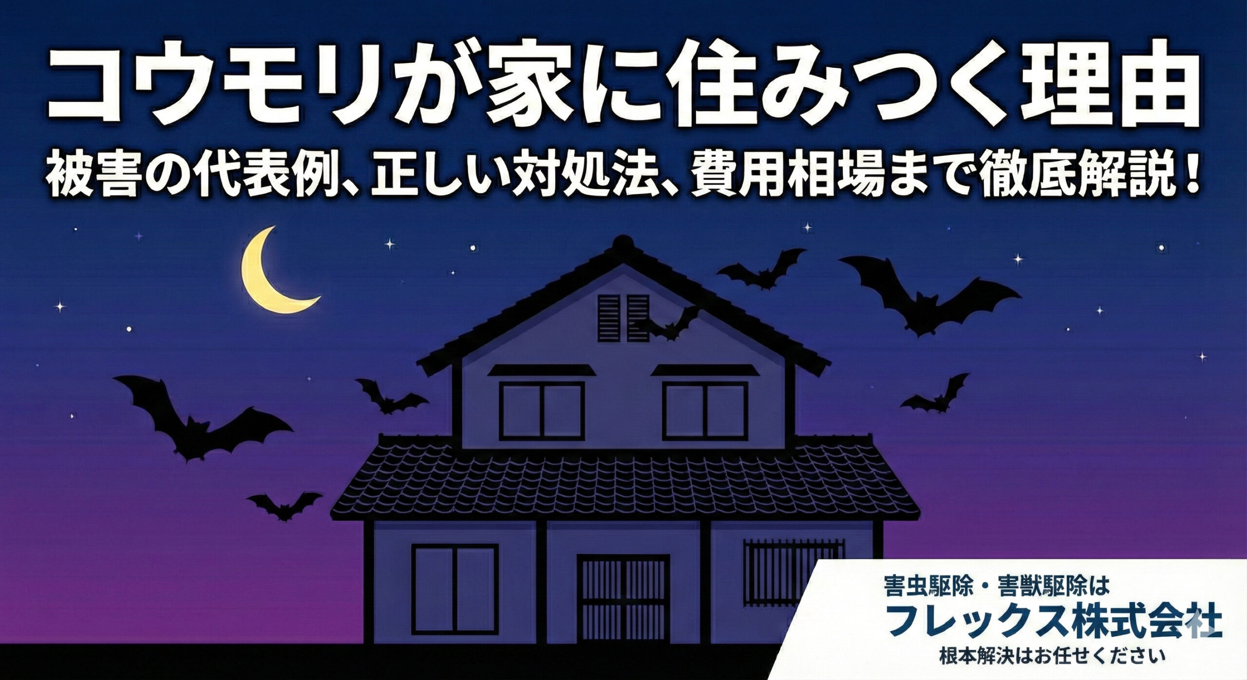 神奈川県大和市にある【フレックス株式会社】は、一般住宅や店舗の害獣・害虫駆除・防除を幅広く行っています。アフターケアや定期点検も万全ですので、お困りごとがありましたらいつでもお気軽にお問い合わせください。