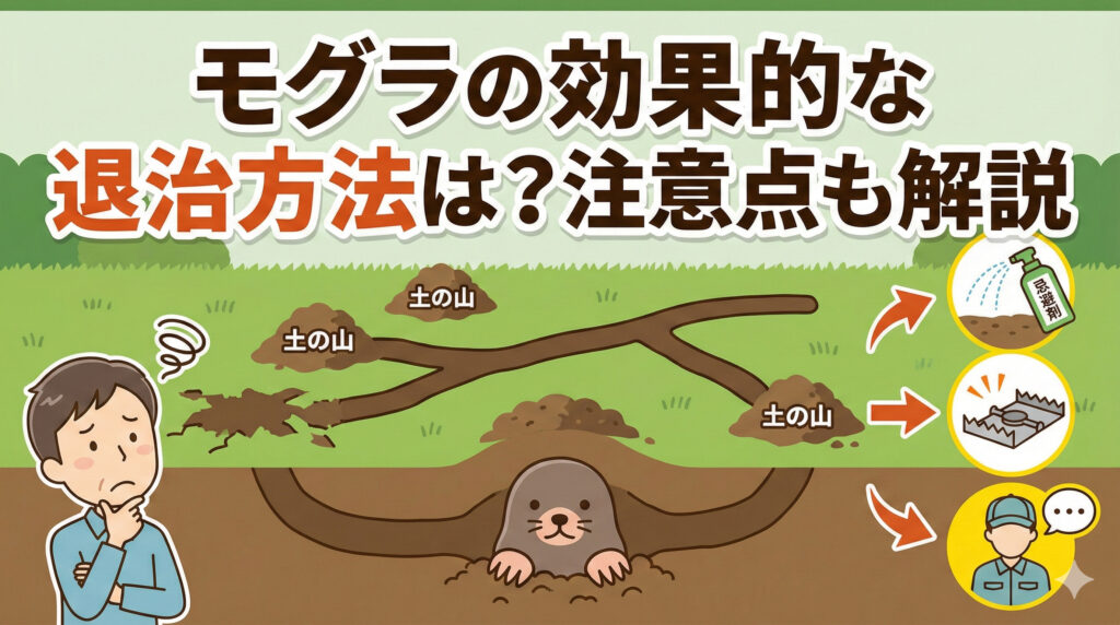 庭や畑に突然現れるモグラ塚や地面の盛り上がりは、多くの方にとって悩みの種です。見た目は可愛らしく感じるかもしれませんが、放置すると芝生や農作物の根を傷め、被害が拡大する恐れがあります。本記事では、モグラの生態を踏まえた効果的な退治方法と、対策時に注意すべきポイントについて詳しく解説します。