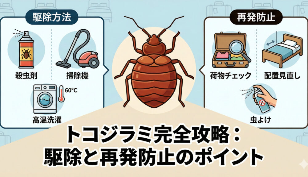 本記事では、トコジラミの具体的な駆除方法と、自宅でできる再発防止策をわかりやすく解説します。